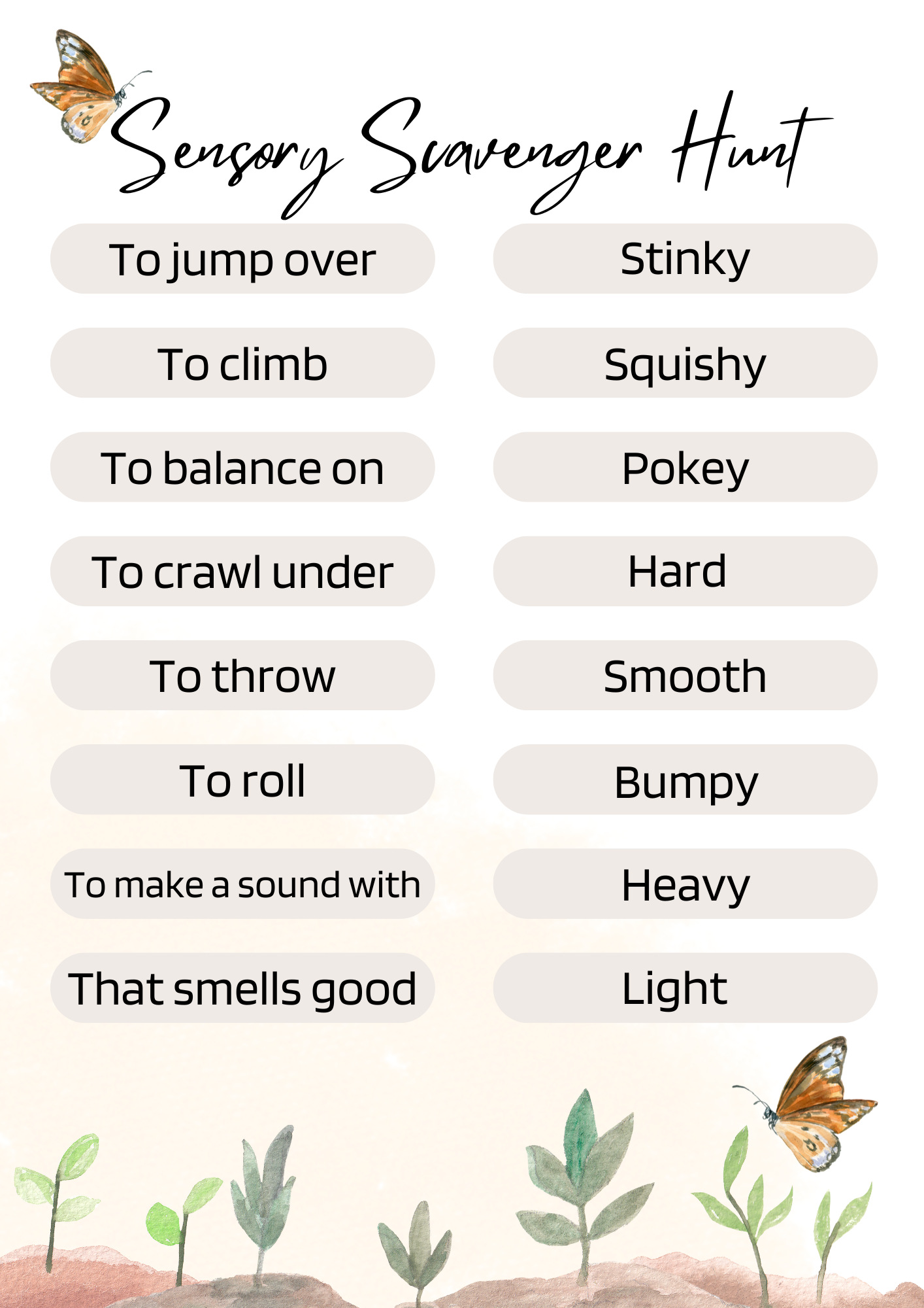 • The printable Sensory Scavenger Hunt sheet